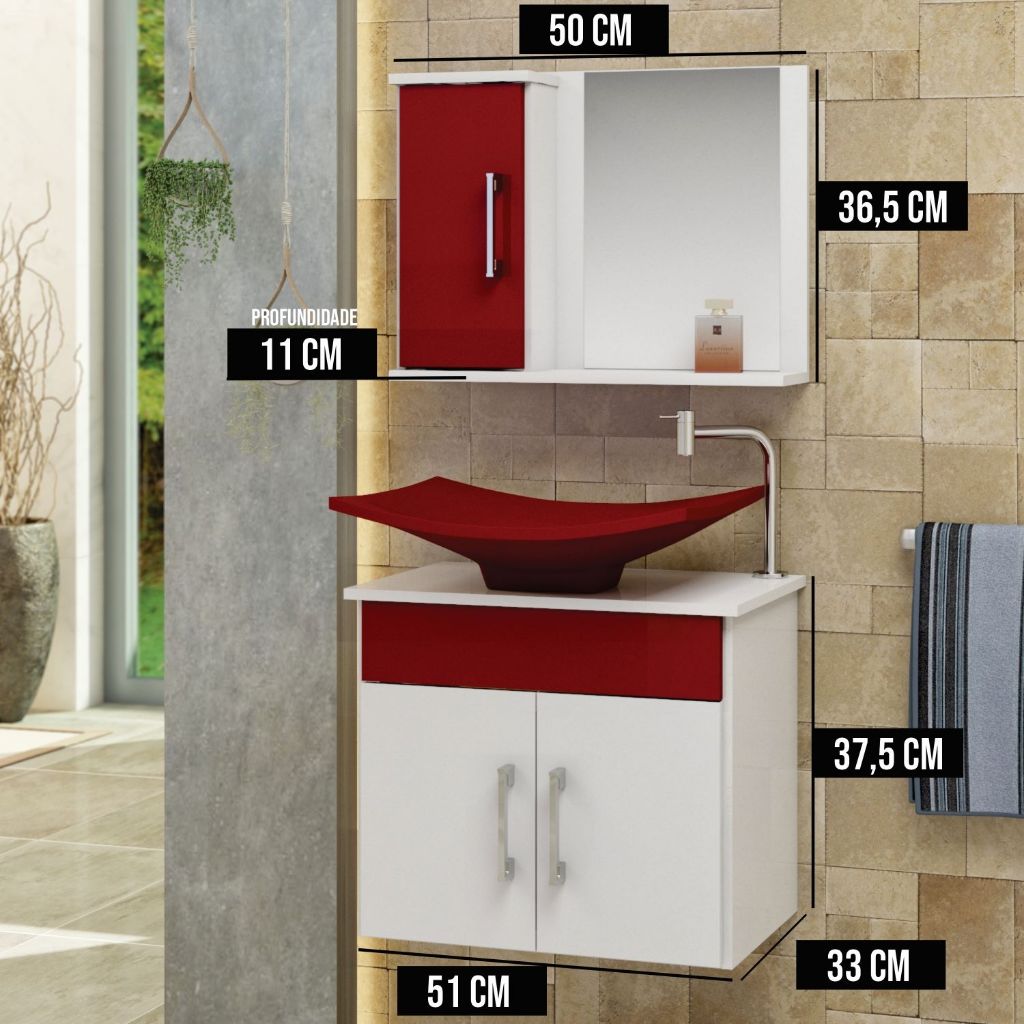 Conjunto Bali MDF gabinete para banheiro 50cm com cuba e espelheira