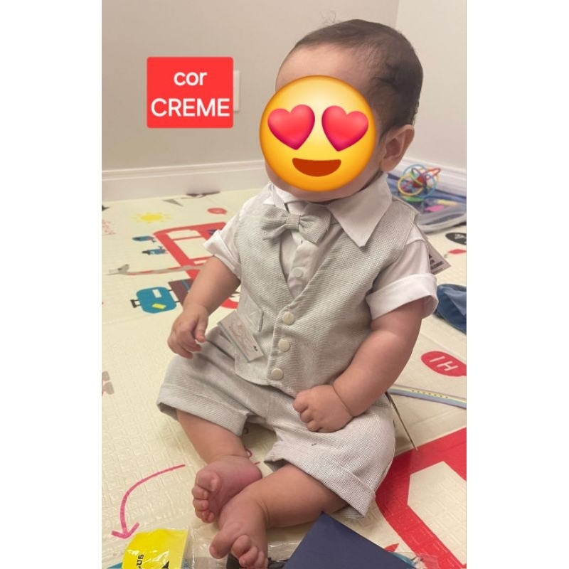 TEMOS KITS DE ALGUMAS CORES E TAMANHOS DE PRONTA ENTREGA DEPOIS DA COMPRA OLHE SEU "CHAT" SEMPRE CHAMAMOS PARA CONFIRMAR AS MEDIDAS. MEDIDAS DO CORPO DO BEBÊ (LEIA COM ATENÇÃO) Tamanho PP..CINTURA 40 CMS..ALTURA 60 CMS..VESTE ATÉ 4,5 KILOS Tamanho P..CINTURA 42 CMS..ALTURA 65 CMS..VESTE ATÉ 6 KILOS Tamanho M..CINTURA 44 CMS..ALTURA 70 CMS..VESTE ATÉ 8 KILOS Tamanho G..CINTURA 48 CMS..ALTURA 75 CMS..VESTE ATÉ 9,5 KILOS Tamanho GG..CINTURA 50 CMS..ALTURA 78 CMS..VESTE ATÉ 11 KILOS INSTRUÇÕES CONFORME IDADE ( LEIA COM ATENÇÃO) Tamanho PP indicado para bebê de 0 á 1 mês MAS DEPENDE MUITO DO CORPO DE CADA BEBÊ confira as instruções logo acima Tamanho P indicado para bebê de 1 á 3 mêses MAS DEPENDE MUITO DO CORPO DE CADA BEBÊ confira as instruções logo acima Tamanho M indicado para bebê de 3 á 6 mêses MAS DEPENDE MUITO DO CORPO DE CADA BEBÊ confira as instruções logo acima Tamanho G indicado para bebê de 6 á 9 mêses MAS DEPENDE MUITO DO CORPO DE CADA BEBÊ confira as instruções logo acima Tamanho GG indicado para bebê de 9 á 12 meses MAS DEPENDE MUITO DO CORPO DE CADA BEBÊ confira as instruções logo acima LEIA COM ATENÇÃO TAMANHO GG NÃO VESTE BEBÊ ACIMA DE 12 MESES( com excessão para bebês com 78cms de altura...cintura 50 cms) *O TAMANHO PODE VARIAR BASTANTE DE ACORDO COM O CORPO DO BEBÊ E PESO ( SE É MAIS COMPRIDO OU MAIS GORDINHO) KIT ACOMPANHA... 1 CAMISA BODY TECIDO TRICOLINE MISTA ALGODÃO/ POLIÉSTER 1 BERMUDA SARJA LEVE ALGODÃO/ POLIÉSTER BERMUDA COM REGULAGEM INTERNA NA CINTURA 1 COLETE TODO FORRADO 1 GRAVATA BORBOLETA(COM REGULAGEM) PERGUNTAS FREQUENTES COMO FALO COM O VENDEDOR?? Dentro do anuncio subindo a tela, depois das avaliações tem a opção PERGUNTAR. Tire todas as suas dúvidas antes de finalizar o pedido estamos a disposição das 8 as 21hs para te auxiliar na compra. O TECIDO ESTICA?? Não estica. Alguns tecidos possuem 2 % de elastano para manter o conforto da modelagem. ONDE VEJO O TIPO DE TECIDO DOS MODELOS?? Olhe as fotos até o final e vai encontrar a descrição do tecido de cada peça. POSSO COMPARAR AS MEDIDAS COM UMA ROUPA DE MALHA?? Não, roupa social costuma ser maior que malha pq o tecido não estica. ONDE ENCONTRO AS MEDIDAS DAS ROUPAS? Devido as pessoas fazerem muita confusão com medidas de roupa social, achamos melhor colocar as medidas do corpo do bebê. Um exemplo SE O BEBÊ TEM 2 MESES MAS PESA MAIS DE 6 KILOS E CINTURA 44 cms (medida justa) significa que ele deve ser bem gordinho ENTÃO O TAMANHO TEM QUE SER MAIOR OU A CALÇA NÃO VAI FECHAR. QUAL O MAIOR TAMANHO? Nosso maior tamanho seria o tamanho GG veste de 9 a 12 meses...ou ate 11 kilos... 78cms de altura. Se ultrapassar essas medidas não vai servir pq a roupa não estica. LEIA COM ATENÇÃO TAMANHO GG NÃO VESTE BEBÊ ACIMA DE 12 MESES( com excessão para bebês com 78cms de altura...cintura 50 cms) ***TAMANHO GG NÃO VESTE ACIMA DE 12 MESES*** A MODELAGEM É GRANDE?? O tamanho é considerado grande se comparado a malha, ou seja se o bebê veste M de malha vai vestir P de roupa social. Roupa social costuma ser grande pq não estica. NÃO FABRICAMOS TAMANHOS MAIORES. NÃO FABRICAMOS SOB MEDIDAS. NÃO FABRICAMOS TAMANHOS MAIORES. NÃO FABRICAMOS SOB MEDIDAS. SOBRE NOSSA EMPRESA: Estamos no mercado a 8 anos oferecendo estilo, qualidade e conforto para os bebês. A LITTLE NIK é um Ateliê de Moda Bebê menino e menina de 0 á 12 meses. Criação e Fabricação própria de confecções e revendemos os acessórios contando com a melhor parceria com outros fabricantes, todos nossos produtos são fabricados com os melhores tecidos pensando no conforto dos bebês.