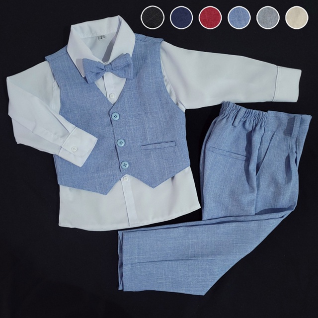 Conjunto Batizado Pajem Colete Azul Serenity Visual de Linho 1 a 12