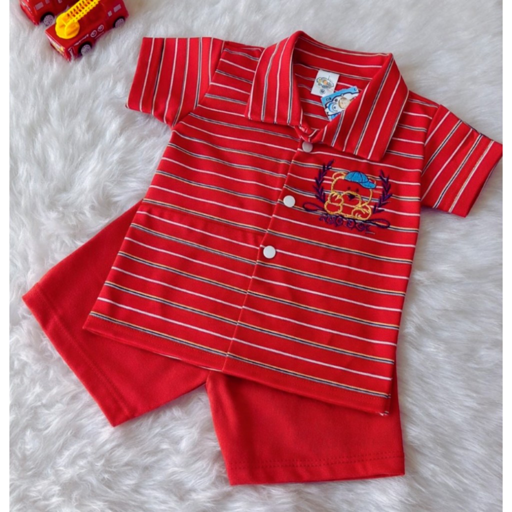 Conjunto Bebê Camisa gola Polo e Shorts Estilo Mauricinho Listrado com bordado - Camiseta Baby RN