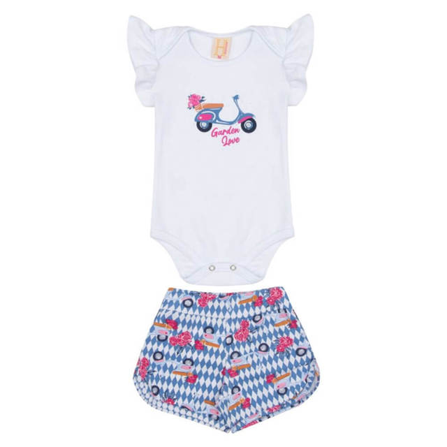 Conjunto Bebê Hrradinhos Body Manga Curta e Shorts Estampado