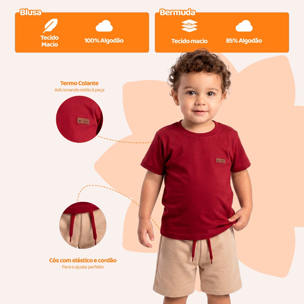 Conjunto Infantil Masculino – Camiseta ou Regata + Bermuda Estilo, conforto e liberdade para o dia a dia Conjunto infantil composto por: -1 camiseta ou regata (escolha o modelo) -1 bermuda moletinho As peças são ideais para o uso diário, seja na escola, passeios ou momentos de lazer. A malha leve e a bermuda com elástico confortável garantem liberdade para brincar com muito conforto. Detalhes do Produto -Camisetas e regatas em meia malha 100% algodão -Gola redonda com reforço de ombro -Bermudas em moletinho com no mínimo 85% algodão -Elástico na cintura com ajuste confortável -Modelos variados – escolha o conjunto desejado Tabela de Medidas – Camiseta/Regata Tam 1 – Busto 27 cm | Comprimento 36 cm | Tam 2 – Busto 28 cm | Comprimento 38 cm | Tam 3 – Busto 29 cm | Comprimento 40 cm | Tam 4 – Busto 31 cm | Comprimento 46 cm | Tam 6 – Busto 33 cm | Comprimento 48 cm | Tam 8 – Busto 34 cm | Comprimento 49 cm | Tam 10 – Busto 36 cm | Comprimento 53 cm | Bermuda Moletinho Tam 1 – Cintura 20 cm | Comprimento 26 cm Tam 2 – Cintura 21 cm | Comprimento 27 cm Tam 3 – Cintura 21 cm | Comprimento 28 cm Tam 4 – Cintura 22 cm | Comprimento 32 cm Tam 6 – Cintura 23 cm | Comprimento 35 cm Tam 8 – Cintura 24 cm | Comprimento 36 cm Tam 10 – Cintura 25 cm | Comprimento 38 cm Pode haver pequena variação nas medidas devido ao processo de confecção. Vantagens do Produto Peças leves, frescas e respiráveis Conforto ideal para o verão e dias quentes Modelos fáceis de vestir e combinar Ótima durabilidade e acabamento Dica: Adicione mais de um modelo ao carrinho e aproveite o mesmo frete para montar o kit ideal para o seu filho. Perguntas Frequentes 1. Posso escolher o conjunto? Sim. Basta selecionar a estampa e o tamanho desejado no momento da compra. 2. As peças são fresquinhas? Sim. A camiseta ou regata é feita em malha 100% algodão, ideal para dias quentes. 3. A bermuda tem elástico? Sim. Todas as bermudas têm elástico confortável e macio na cintura.