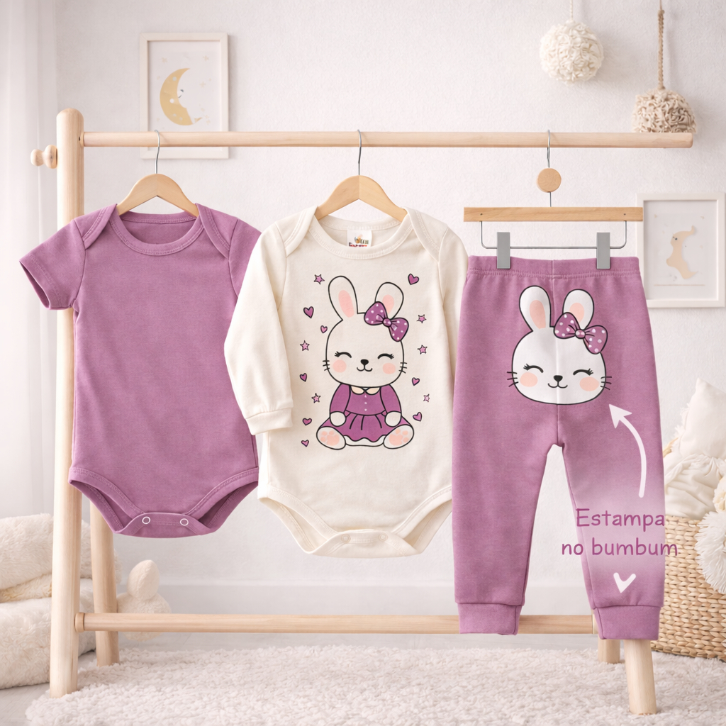 Conjunto Bebê Menina 3 Peças Roupa De Bebê Feminina Enxoval Algodão Kit Body Premium Conforto Total