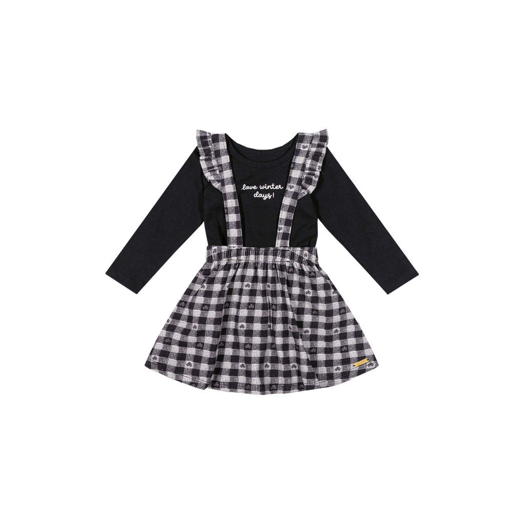 Conjunto Bebê Menina Body e Salopete Xadrez Colorittá Preto