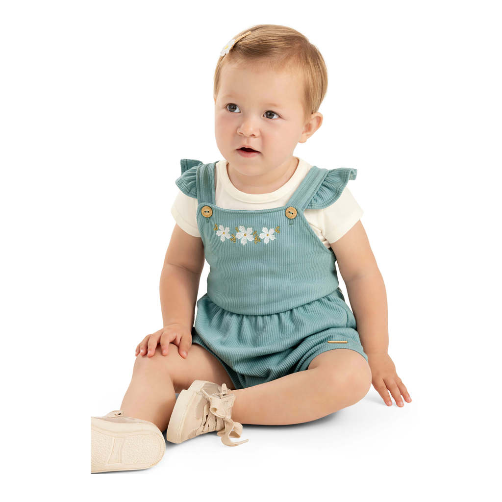 Conjunto Bebê Menina Jardineira Floral Colorittá Verde