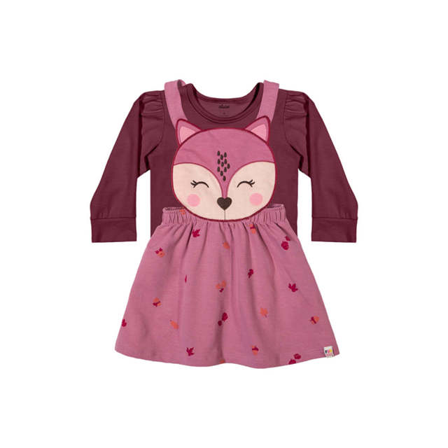 Conjunto Bebê Menina Vestido e Blusa Raposa Elian Bordô