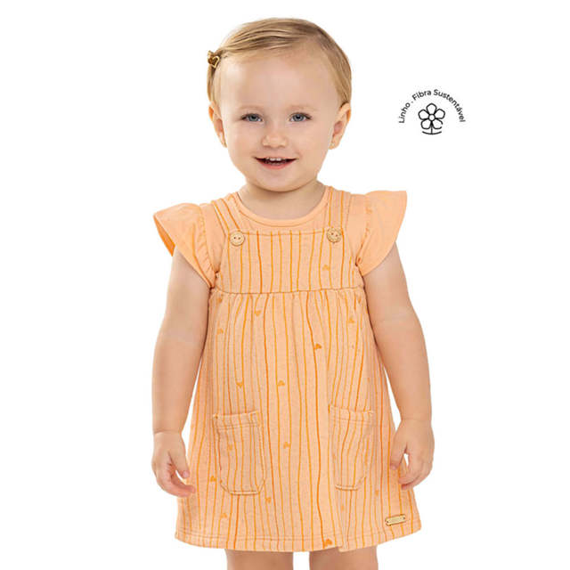 Conjunto Bebê Menina Vestido Listrado Colorittá Laranja