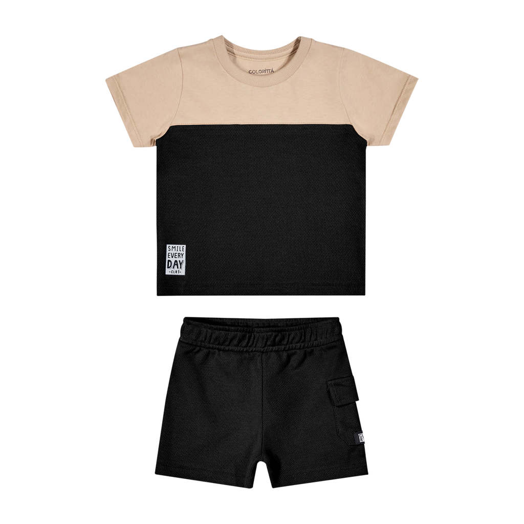 O Conjunto Colorittá é composto por camiseta em meia malha e dupla face piquet e bermuda em dupla face piquet. A camiseta de mangas curtas traz um recorte bicolor com textura diferenciada, além de estampa discreta com relevo, garantindo um visual cheio de personalidade. Já a bermuda conta com elástico no cós, bolso lateral e textura combinando com a camiseta. Ideal para passeios e dias de diversão, esse conjunto é uma escolha versátil e despojada para curtir cada momento. Aposte!Detalhes da peça: • Conjunto composto por camiseta e bermuda • Feito em meia malha e dupla face piquet • Possui mangas curtas • Recorte bicolor texturizado • Estampa com relevo • Elástico no cós • Possui bolso • Ideal para passeios e dias de diversão
