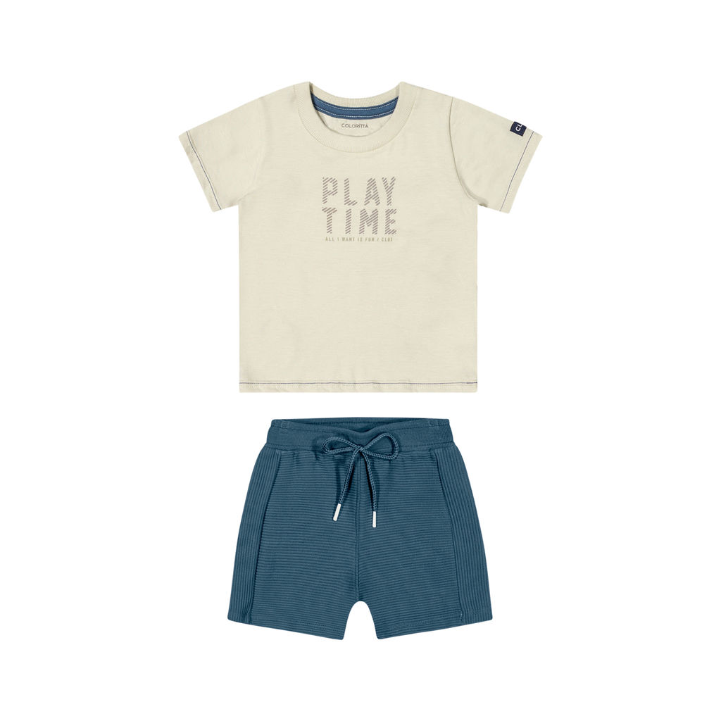 O Conjunto Bebê Play Time Colorittá é perfeito para momentos de diversão. A camiseta vem com a frase 'Play Time - All I Want is Fun', que significa 'Hora de Brincar - Tudo o que eu quero é diversão', combinada com um shorts confortável e com cordão ajustável. Ideal para passeios e brincadeiras ao ar livre, esse conjunto oferece estilo e liberdade para as crianças se movimentarem com conforto.