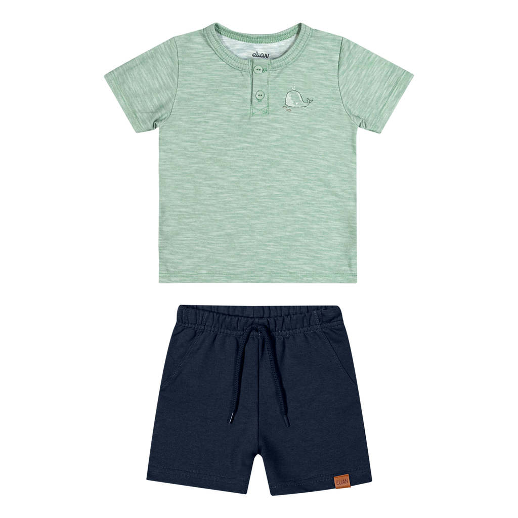 Conjunto Bebê Menino Malha Flamê Baleia Elian Verde