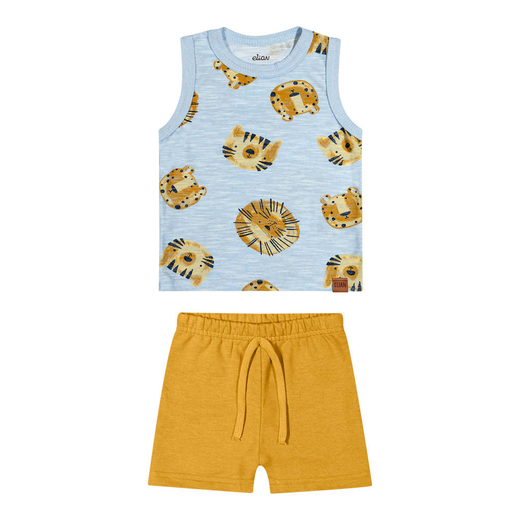 Escolha certa para um visual leve e cheio de estilo, o Conjunto Elian é composto por regata em meia malha flamê e bermuda em moletom sem felpa. A regata possui estampa com o rostinho de animais da selva, trazendo um toque lúdico e superfofo ao visual. Já a bermuda conta com elástico no cós com cadarço, proporcionando liberdade de movimentos. Ideal para brincadeiras ou passeios, aposte nesse visual moderno e cheio de personalidade para as primeiras aventuras dos meninos!Detalhes da peça: • Conjunto composto por regata e bermuda • Feito em meia malha flamê e moletom sem felpa • Possui estampa com animais da selva • Possui elástico no cós • Ideal para brincadeiras e passeios