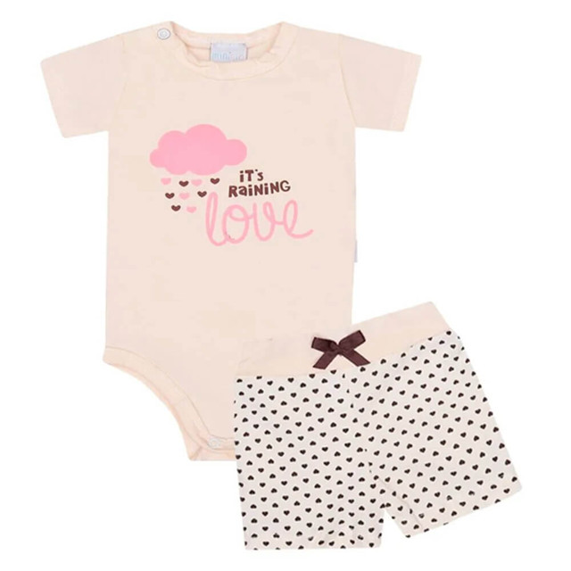Conjunto Bebê Miniclo Moca Manga Curta Estampa Love + Short