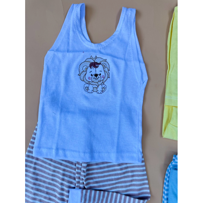 Este conjunto de 2 peças é perfeito para o verão e dias mais quentes, garantindo que o seu recém-nascido (RN) fique confortável e com a pele sempre respirando, graças ao tecido 100% algodão de alta qualidade. 🌟 O Kit Essencial (2 Peças RN): 1. Camiseta Regata: Camiseta cavada (regata) em malha de cor sólida. Possui um lindo Bordado Computadorizado de Leão Fofo no centro. 2. Calça (Mijão): Calça confortável com estampa Listrada em tons neutros, que garante um ajuste suave na cintura e nos tornozelos. 🧵 Detalhes de Qualidade e Conforto: • Tamanho: RN (Recém-Nascido) – Ideal para os primeiros dias de vida. • Composição: 100% Algodão – Pura maciez, material respirável e hipoalergênico, o melhor para a pele sensível do bebê. • Acabamento: O bordado computadorizado do Leão garante um desenho bonito e resistente às lavagens. • Versatilidade de Cores: Temos cores variadas para meninos e neutras, como azul, amarelo, verde e branco (mencione as cores que você vende). ☀️ Uso Recomendado: • Dias quentes e Verão. • Roupa de uso diário. • Enxoval de Maternidade.