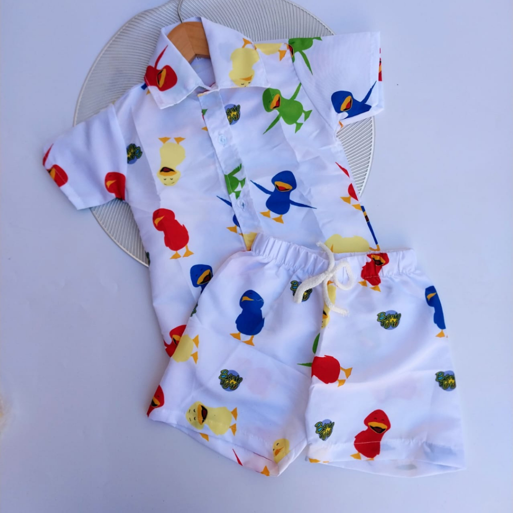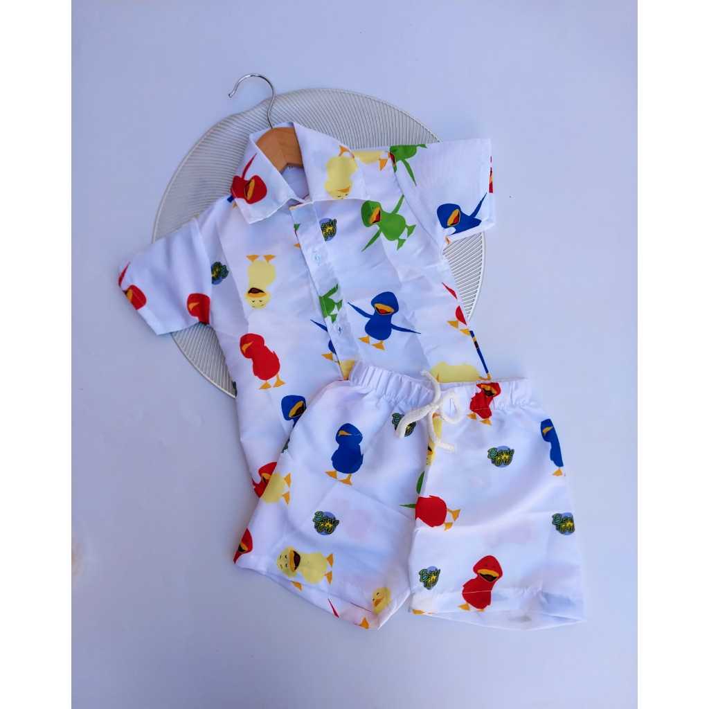 Conjunto Mauricinho Bento e tOTO Lindo conjunto social com estampa temática. Composto por camisa manga longa, calça comprida, suspensório e gravata borboleta. - Tecido leve, fresquinho e confortável. Composição: Conjunto com Blusa e short Garantia do vendedor: 10 dias
