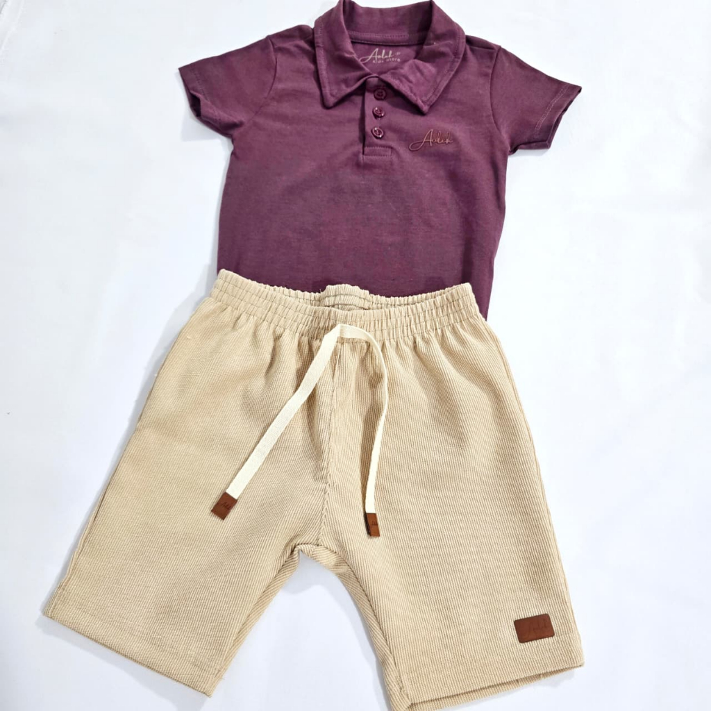 O CONJUNTO PERFEITO PARA O SEU GAROTINHO ESTÁ AQUI. Ao comprar você receberá 1 BERMUDA + 1 CAMISA GOLA POLO conforme a sua escolha. BERMUDA COTELÊ Essa bermuda em cotelê foi desenvolvida para vestir meninos com muito estilo e conforto. Com elástico na cintura para melhor se adaptar, e confeccionada em tecido macio e maleável, ela garante liberdade de movimento, ideal para acompanhar cada descoberta do bebê no dia a dia. Versátil e charmosa, combina facilmente com diferentes peças, sendo uma ótima escolha para deixar o look ainda mais fofo e moderno. Composição: 98% poliéster 2% elastano CAMISETA GOLA POLO Confeccionada em malha 100% algodão de alta qualidade, proporcionando máximo conforto para os meninos. Com cores modernas e versáteis, é ideal para diversas ocasiões, garantindo estilo e liberdade de movimento ao longo do dia. ✅ Com acabamento impecável e 3 botões resistentes de fácil manuseio. ✅ Confeccionadas em 100% algodão: Proporcionando suavidade e conforto para a pele delicada das crianças. ✅ Design versátil e sofisticado: Ideal para usar em diversas ocasiões, desde passeios casuais até eventos mais formais. TAMANHOS: Tam 1 - Ideal para crianças menores de 1 ano Tam 2 - Ideal para crianças de 1 ano Tam 3 - Ideal para crianças de 2 anos BERMUDA: Tabela de medidas da cintura. Lembrando que na cintura possui elástico TAM 1: cintura 21cm TAM 2: cintura 22cm TAM 3: cintura 23cm CAMISA GOLA POLO: Tamanho 1 – Cintura: 24 cm / Comprimento: 33 cm (Indicado para crianças menores de 1 ano) Tamanho 2 – Cintura: 25 cm / Comprimento: 37 cm (Indicado para crianças de 1 ano) Tamanho 3 – Cintura: 27 cm / Comprimento: 39 cm (Indicado para crianças de 2 anos) AOLEH KIDS Um carinho muito além do conforto