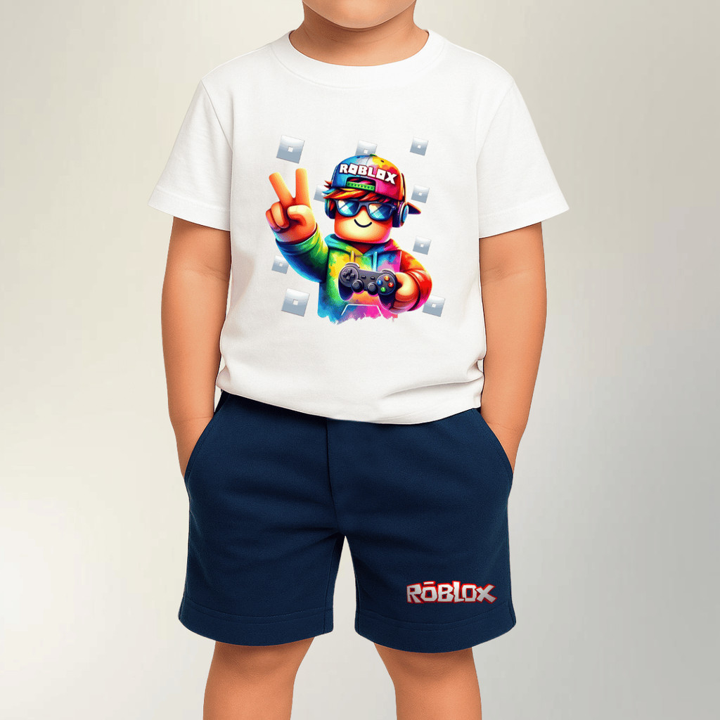 Conjunto Bermuda E Camiseta Estampa Roblox De Menino Infantil