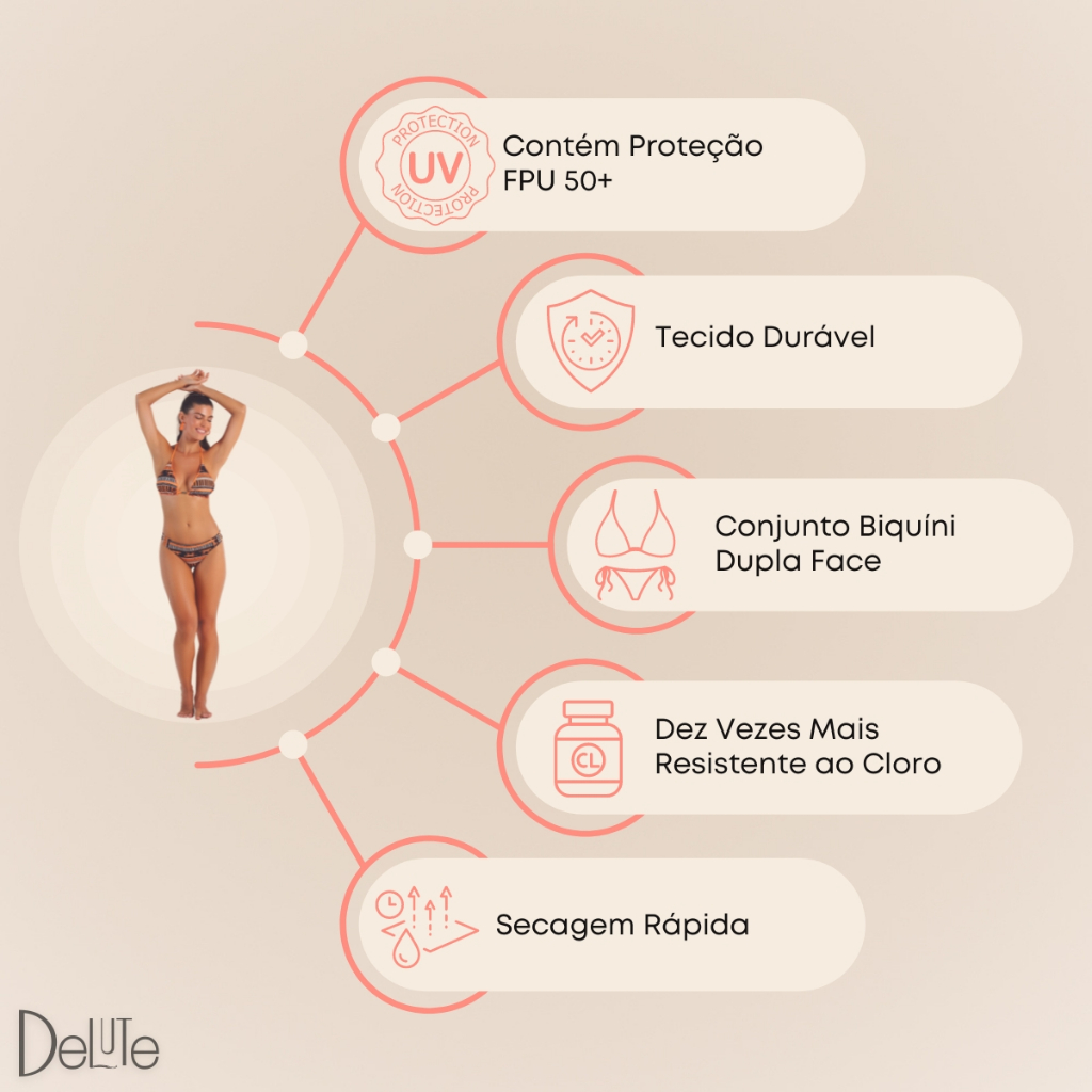 Conjunto Biquíni Arsiè Estampado Dupla Face Modelo Cortininha Calcinha Fio Dental Alça Ajustável