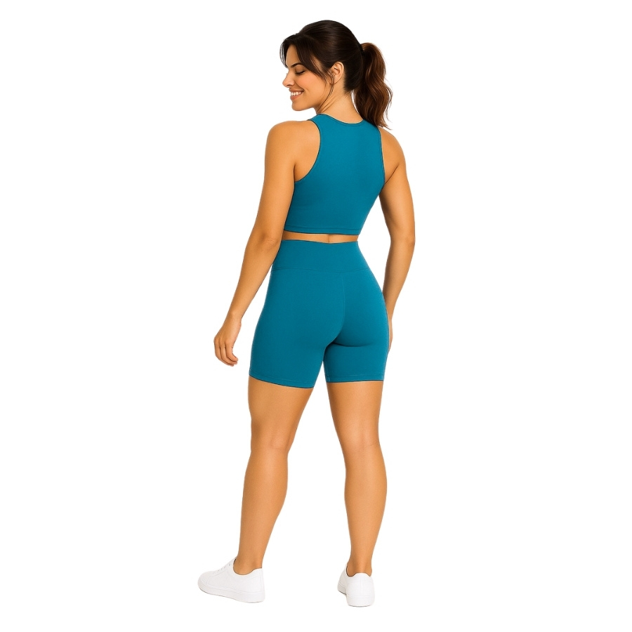 Conjunto Blackout Moda Academia Liberdade De Movimento Bermuda e Cropped