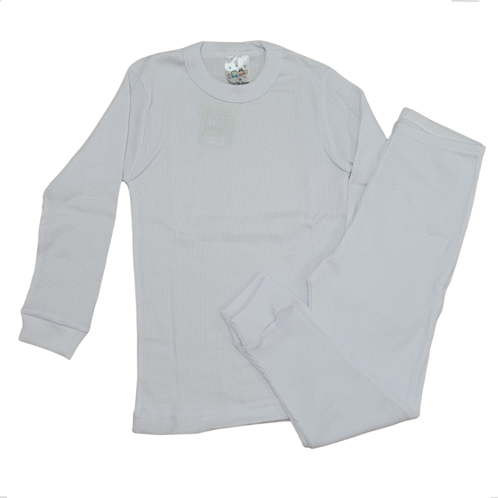 Conjunto Blusa Calça Pijama Canelado Liso Longo 100% Algodão Pijaminha branco criança Mijão Sobrepor