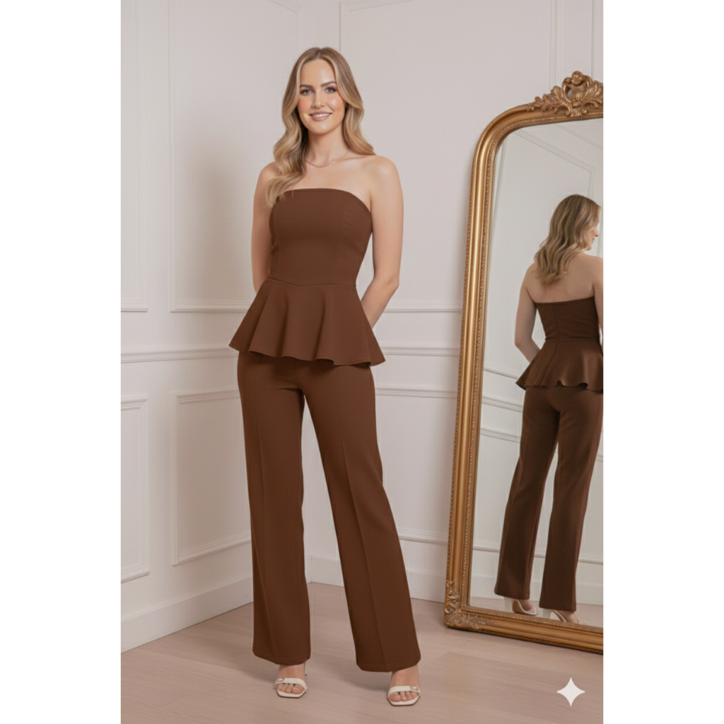 Esse conjunto foi feito para mulheres que gostam de transmitir elegância com personalidade. O modelo tomara que caia com babado peplum valoriza a cintura e traz um toque moderno e feminino, enquanto a calça de alfaiataria garante um caimento impecável e alonga a silhueta. Perfeito para eventos, jantares ou ocasiões especiais em que você quer estar impecável e confiante. Um look versátil, elegante e cheio de atitude. 💫 Tecido: Linho Misto Composição: 70% Viscose - 30%Linho Disponível nos tamanhos: P (38/40), M (40/42), G (42/44) e GG (44/46).