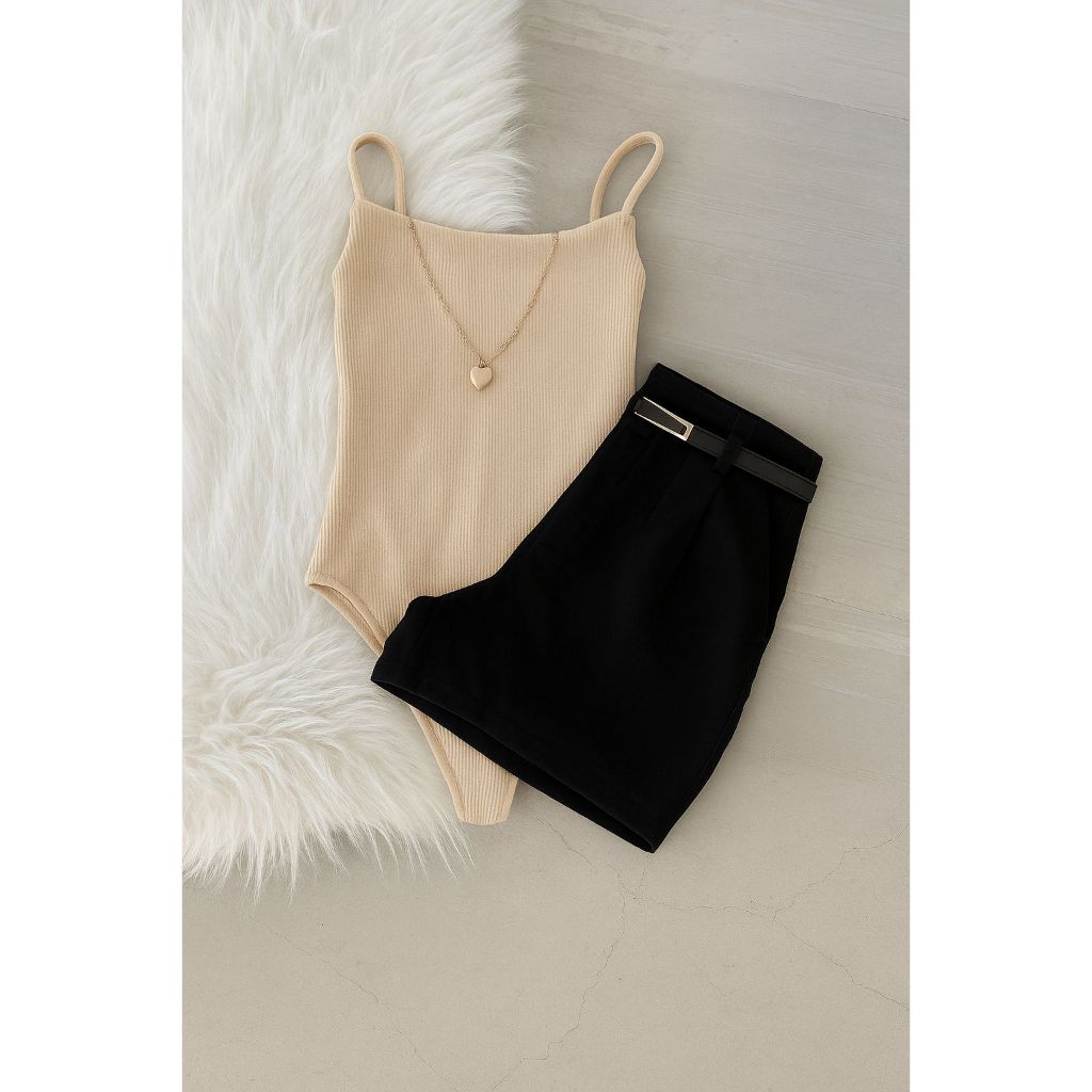 Conjunto Body Alcinha+ Short Alfaiataria Com Cinto Inspiração Moda Blogueira