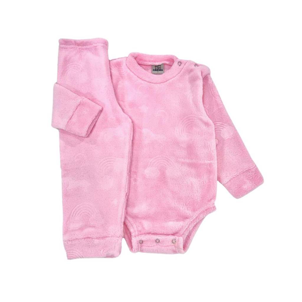 Conjunto Body Bodie e Calça Fleece Manga Longa Bebê Baby Inverno Menino Menina
