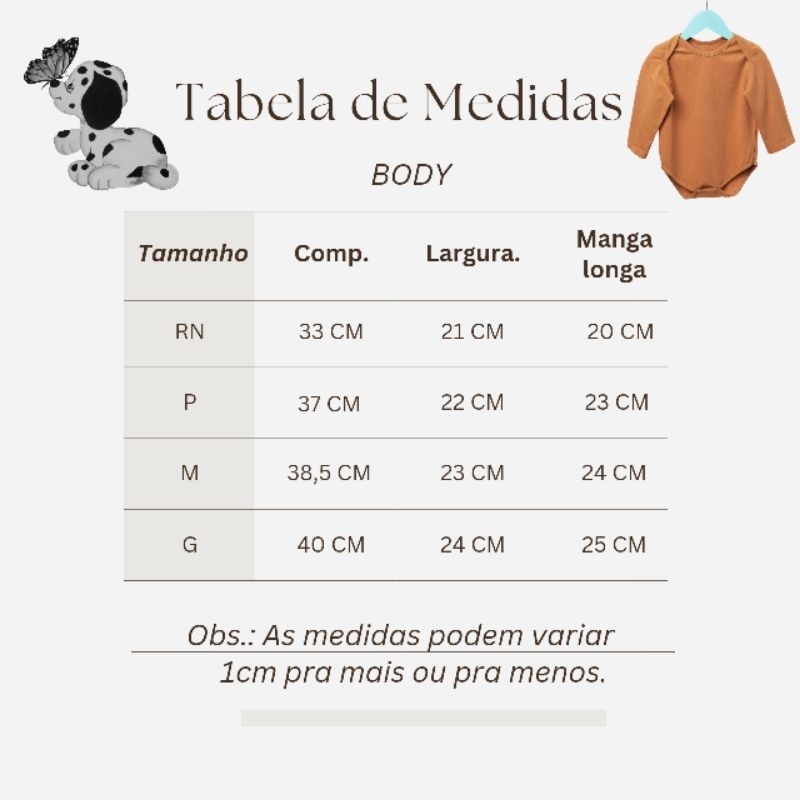 🌸 Conjunto Body + Calça – Um abraço de ternura para seu bebê! Seu pequenino merece todo o carinho e aconchego do mundo! 💕 Este conjuntinho foi criado com amor e cuidado para envolver seu bebê em um abraço quentinho de conforto. Feito com malha Suedine 100% algodão, ele tem um toque macio como um afago, mantendo seu bebê feliz e confortável o dia inteirinho. 🐻💫 Por que você vai se apaixonar? ✔ Tecido suave e delicado, perfeito para mimar a pele sensível do seu bebê ✔ Gola americana, facilitando a troca de roupinha sem incomodar os pequenos ✔ Estampas encantadoras e apaixonantes, para deixar seu bebê ainda mais fofo e irresistível ✔ Tamanhos RN, P, M e G, acompanhando cada fase do crescimento do seu pequeno tesouro 🛁💙 Cuidados especiais para manter o carinho por muito mais tempo: Lave com cores semelhantes para preservar a delicadeza das peças Evite alvejantes para manter a maciez e o toque suave Não use secadora, garantindo que o tecido continue fofinho Passe sempre pelo avesso para proteger os detalhes e o carinho colocado em cada peça 📦✨ Com amor e rapidez: Sabemos que você não vê a hora de receber, por isso enviamos seu pedido no mesmo dia da compra! 💞 Nossa equipe está sempre prontinha para te ajudar! Qualquer dúvida, estamos aqui para garantir que sua experiência seja cheia de carinho! Com amor, 🌷 Equipe Bitô Confecção Infantil 🌷
