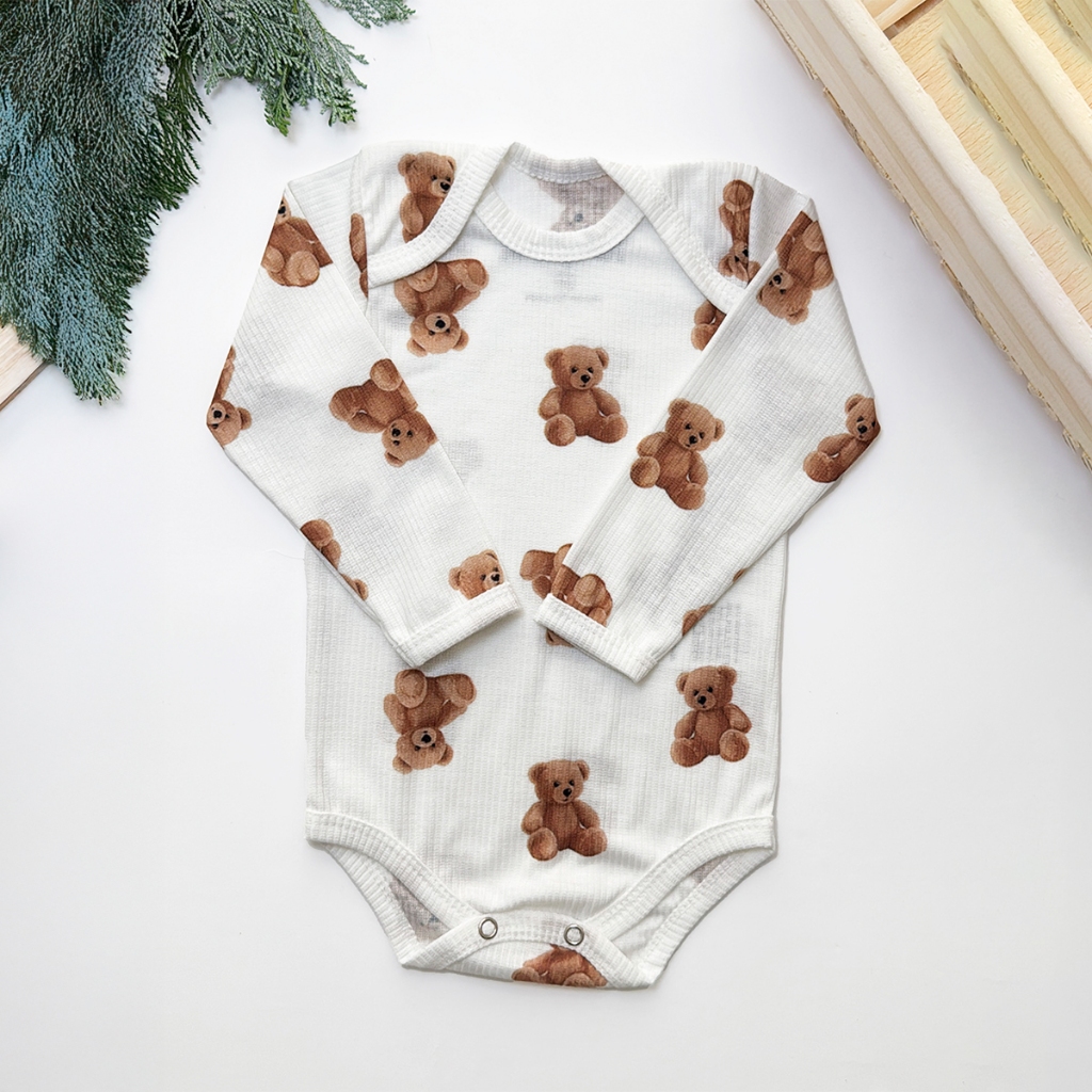Conjunto Body e Calça Canelado Longo Ursos Confortável Dia a Dia