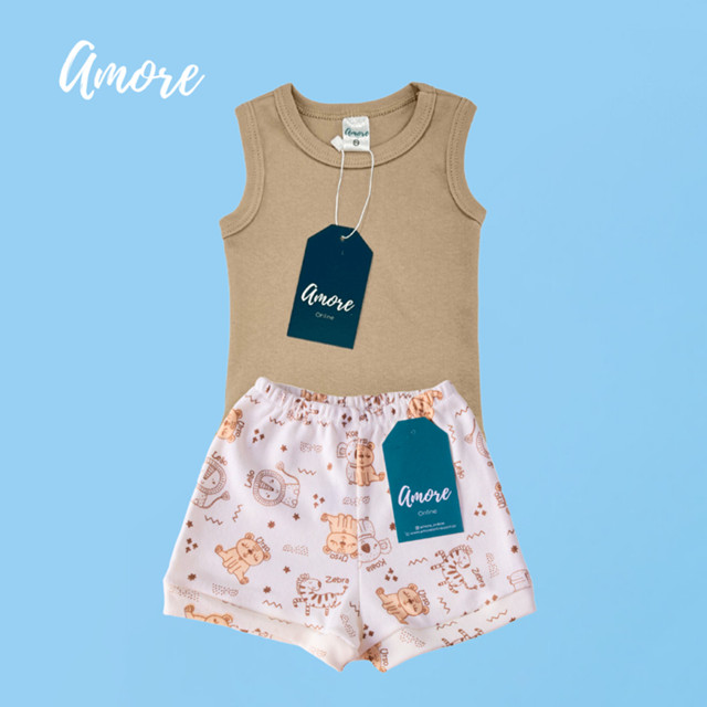 Conjunto Body Regata Amore Marrom e Short Coleguinha 100% Algodão aparece na subcategoria Bodys e Macacões (de Moda Infantil) na Shopee Brasil por R$ 32,90 (34% de desconto sobre o preço original de R$ 49,85).
