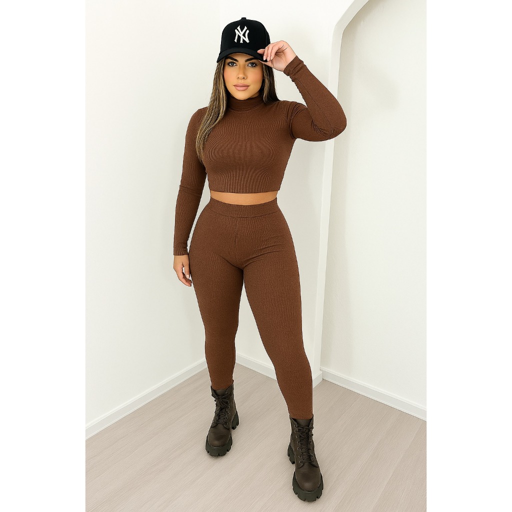 Conjunto Boho Chic Feminino Inverno Manga Longa Estilo Romântico Confortável Legging e Cropped
