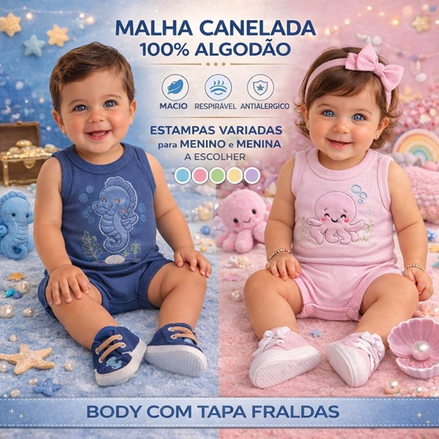 Catalogado na subcategoria Bodys e Macacões (de Moda Infantil), Conjunto bory body regata e tapa fralda bebe menino e menina algodão canelado está à venda na Shopee Brasil por R$ 29,50 (41% de desconto sobre o preço original de R$ 50,00). Nota 4.9 de 5 na Shopee e 263 unidades vendidas, este produto se destaca pelo excelente custo-benefício.