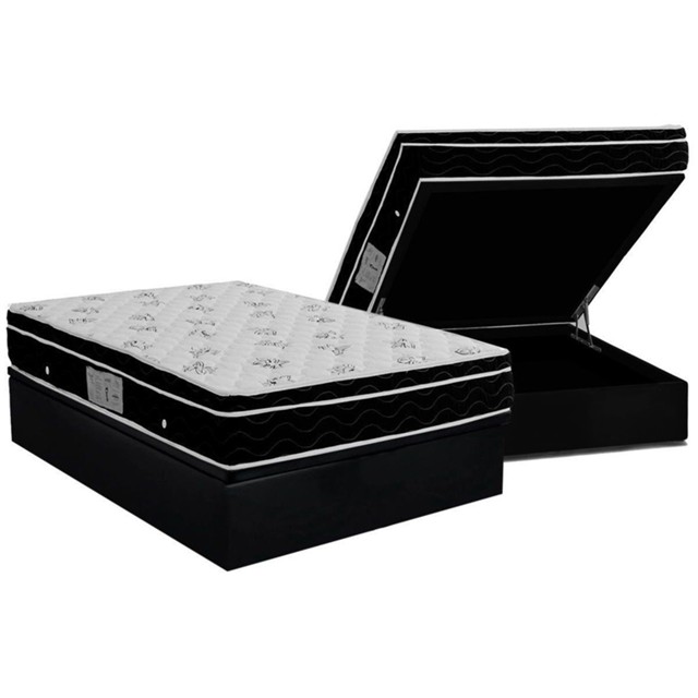 Conjunto Box Baú Casal: Colchão Molas Ortobom Nanolastic Physical Spring + Base CRC Courano Black(138x188)