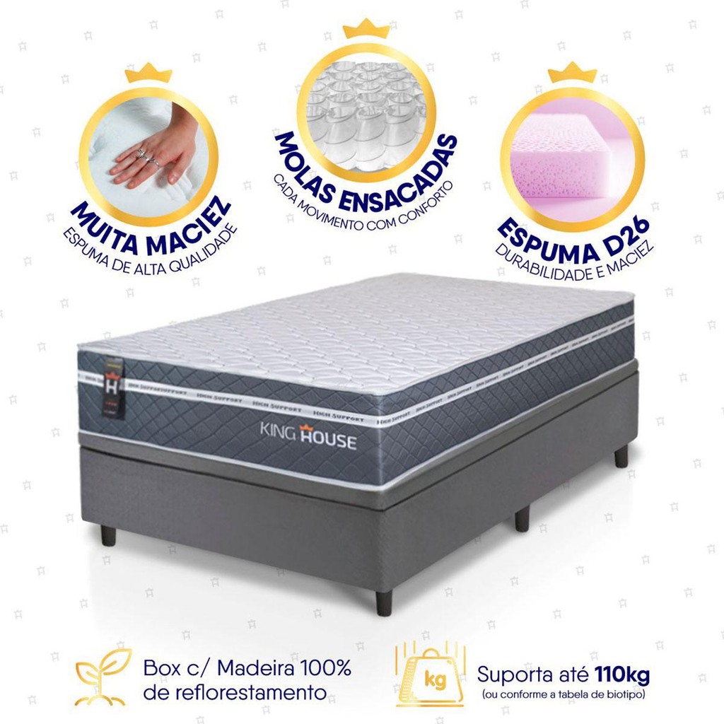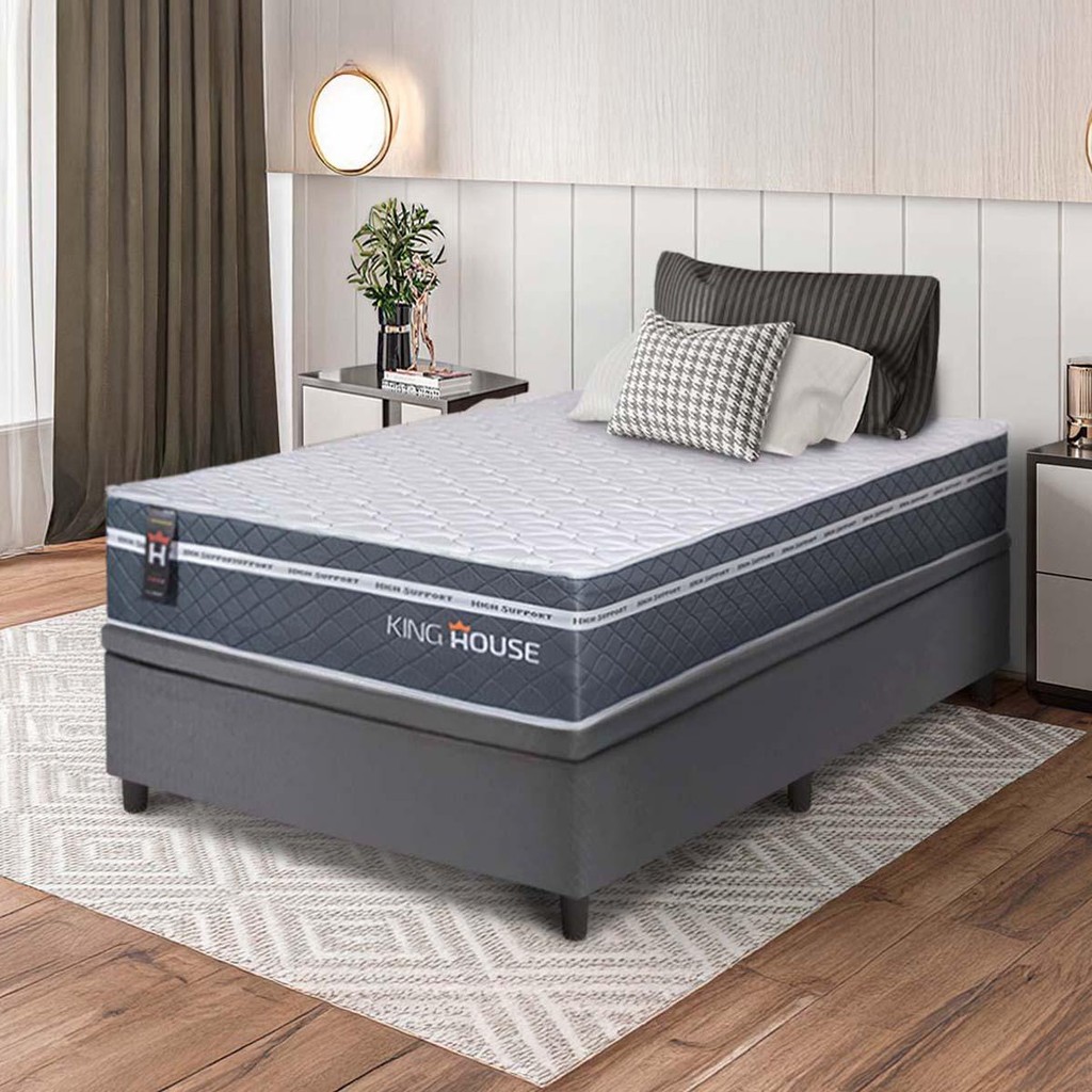Conjunto Box Baú Cinza Cairo Cinza Molas Ensacadas Solteiro 96x203x71 - King House