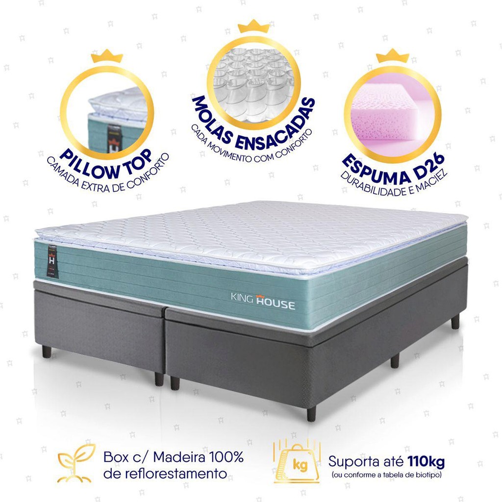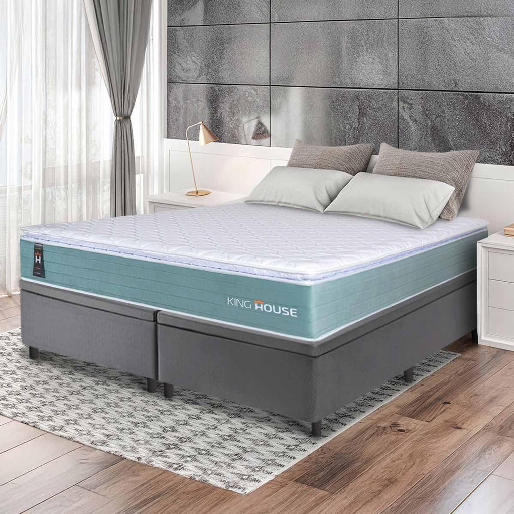 | Conjunto Box Baú Cinza Lagos Verde Molas Ensacadas Queen 158x198x73... este produto | R$ 3.075,98 | 10% | 5.0/5 | — |