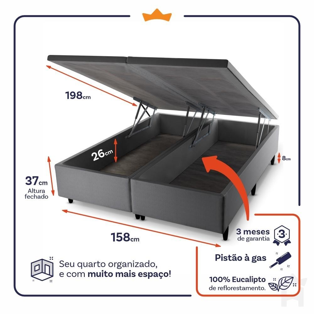 Conjunto Box Baú New York 158x198x80 c/ Molas Ensacadas