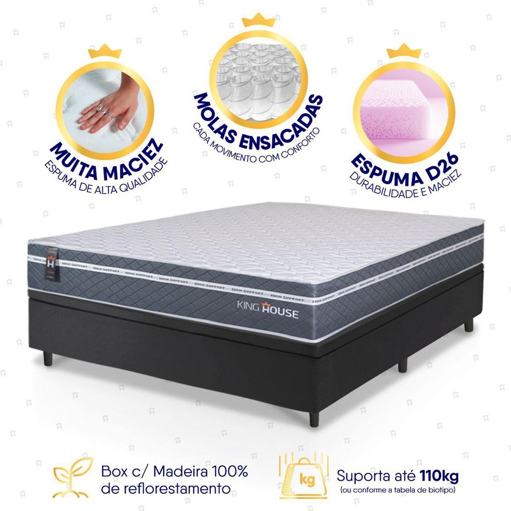 Conjunto Box Baú Preto Cairo Cinza Molas Ensacadas Casal 138x188x71 - King House