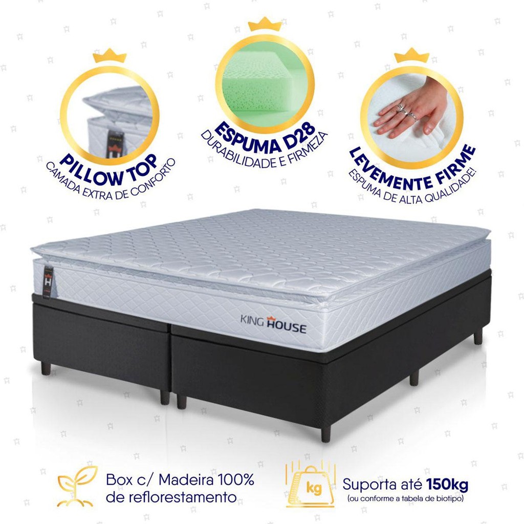Conjunto Box Baú Preto Luanda Branco Espuma D28 Queen 158x198x69 - King House