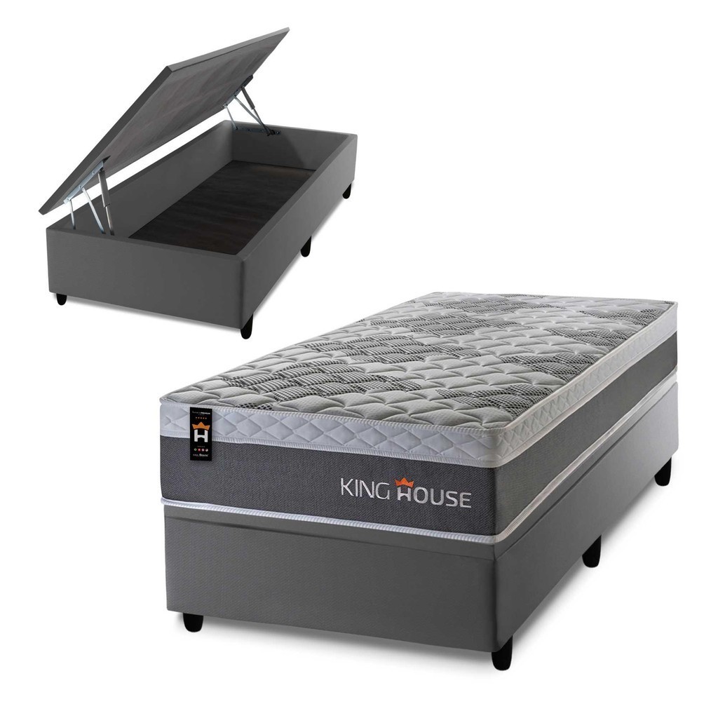 Conjunto Box Baú Sheffield Cinza 96x203x72 c/ Molas Ensacadas