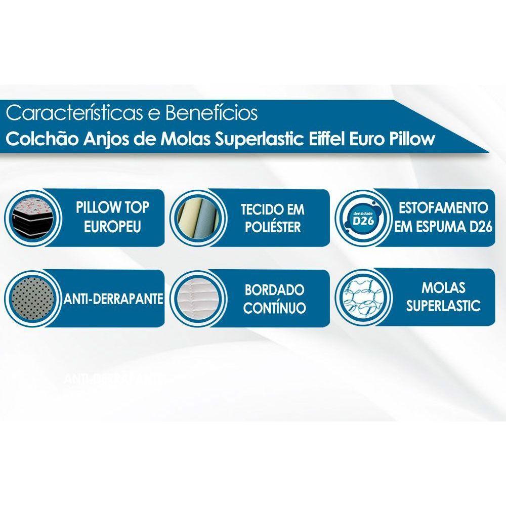 Conjunto Box Baú Solteiro: Colchão Molas Anjos Eiffel Superlastic + Base CRC Courano White(88x188)