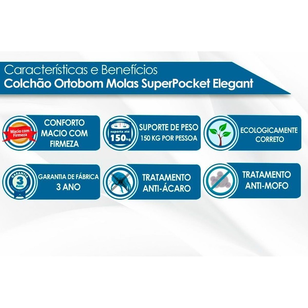 Conjunto Box King: Colchão Molas Ortobom SuperPocket Elegant + Base CRC Suede Black(193x203)