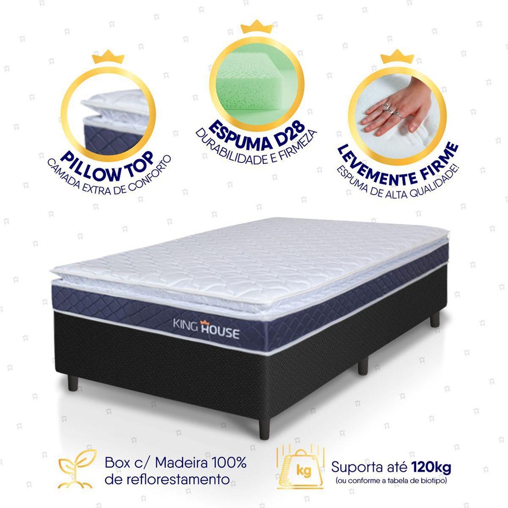 | Conjunto Box Preto Durban Azul Espuma D28 Solteiro 96x203x57 - King... este produto | R$ 1.021,63 | 16% | 5.0/5 | 2 |