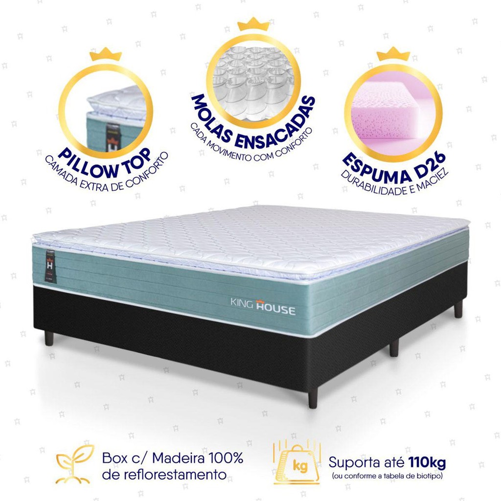 | Conjunto Box Preto Lagos Verde Molas Ensacadas Casal 138x188x66 - K... este produto | R$ 1.565,11 | 8% | 5.0/5 | 1 |