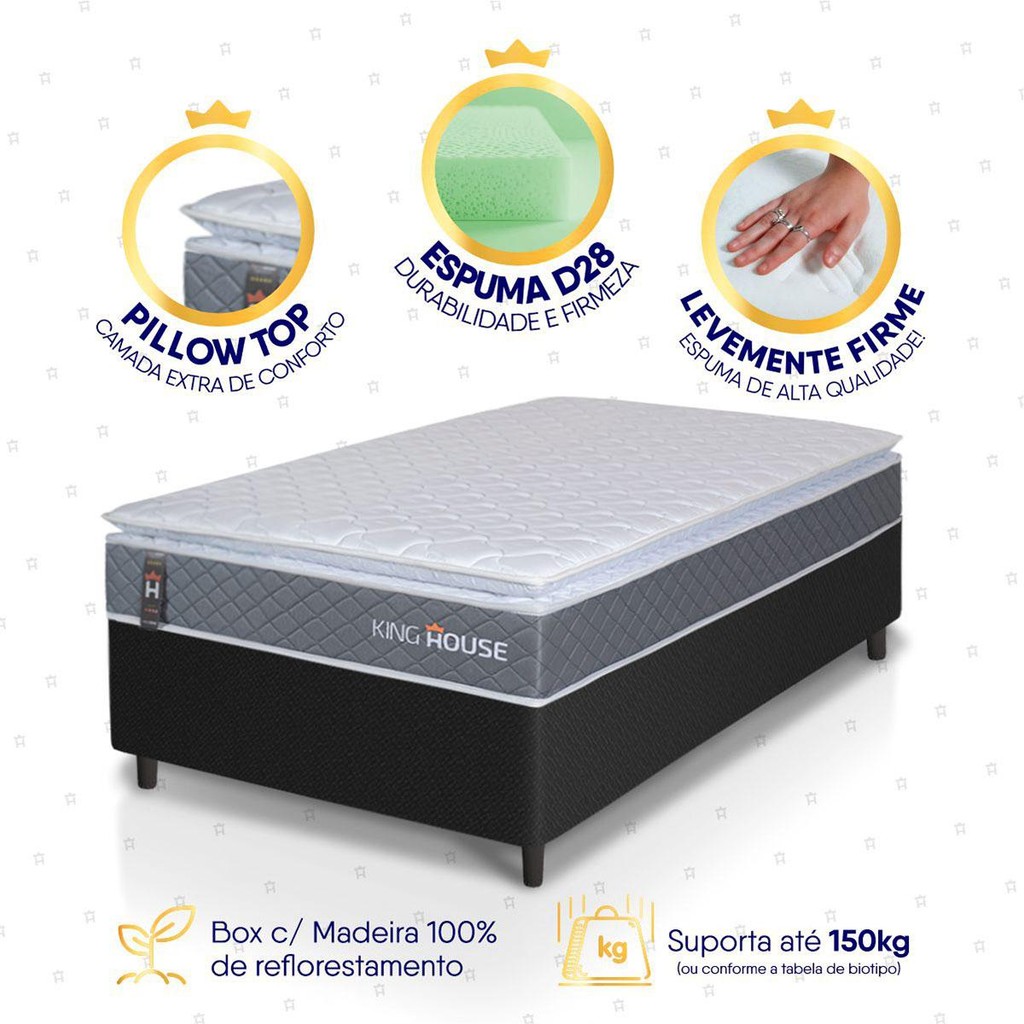 Dica Importante Gostou do produto, mas o tamanho não se encaixa à sua necessidade? Não tem problema, o Conjunto Box Luanda está disponível em 6 larguras diferentes para que se adapte a qualquer ambiente. Nada melhor do que dormir confortavelmente, seja sozinho ou com seu parceiro, com um amplo espaço e conforto, não é mesmo?! Introdução ao Produto: Sabe aquela sensação de felicidade e satisfação que você sente quando faz uma boa escolha?! Pois bem, essa é a sensação de comprar um Conjunto Box Luanda. Um produto moderno com design elegante, que irá transformar para sempre suas noites de sono :) Feito com os mais nobres materiais em sua composição, ele conta com espuma D28. O colchão Luanda acomoda melhor o contorno do corpo, dispondo de forma correta quadris e ombros, expulsando as dores e problemas de coluna.Não perca mais tempo e garanta já o seu Conjunto Box Luanda! Características: - Espuma D28; - Suporta até 120Kg por pessoa. Características do Box: - 100% eucalipto; - Pés com 12 cm de altura; Dimensões: - Altura: 50 cm (colchão) + 12 cm (box) = 62 cm de altura; - Largura : 88 cm; - Comprimento: 188 cm. Conteúdo da embalagem: - 1 Colchão Luanda - 1 Box Preto - Manual de Montagem - Certificado de Garantia - 6 Pés de PVC Garantia: 1 ano de garantia nas molas, 1 ano de garantia nas espumas e 3 meses no revestimento. Informações Relevantes: - É imprescindível ter ciência de que é possível que haja divergência de tonalidade nos tecidos devido às variações de configurações de monitores/telas e lotes do fornecedor; - Não nos responsabilizamos pelo transporte por escadas, elevadores, guincho ou içamento deste produto, qualquer despesa é de responsabilidade do cliente; - Verifique as dimensões do produto, certificando-se de que o mesmo possa ser transportado por portas, corredores e elevadores; - Os objetos que decoram a imagem, não acompanham o produto; - Não nos responsabilizamos pela instalação e montagem; - Prestamos assistência somente por defeitos de fabricação. Nosso produto é certificado pelo INMETRO! CERTIFICADO DE CONFORMIDADE NÚMERO: 07424-001-02/2019 OCP: 003