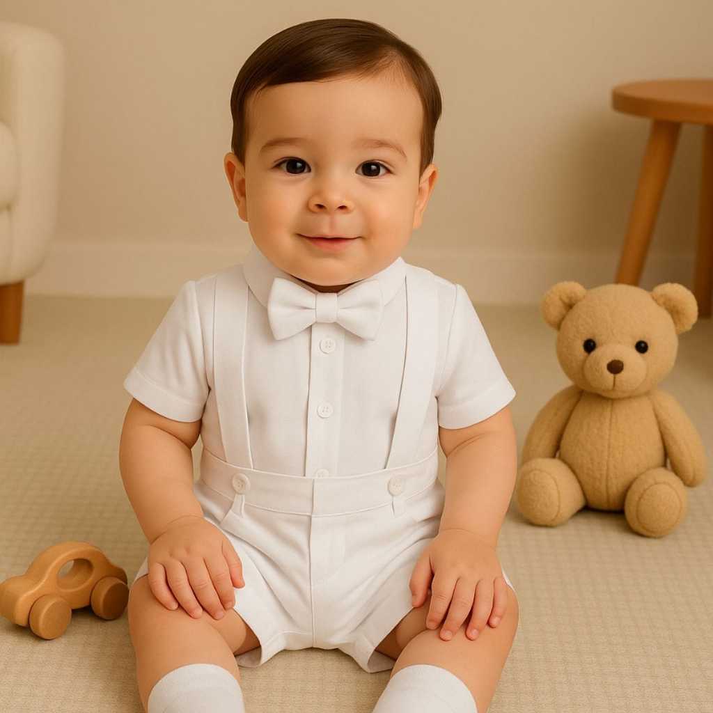 Conjunto Branco Social Infantil Batizado Pajem Casamento Festa P ao 3