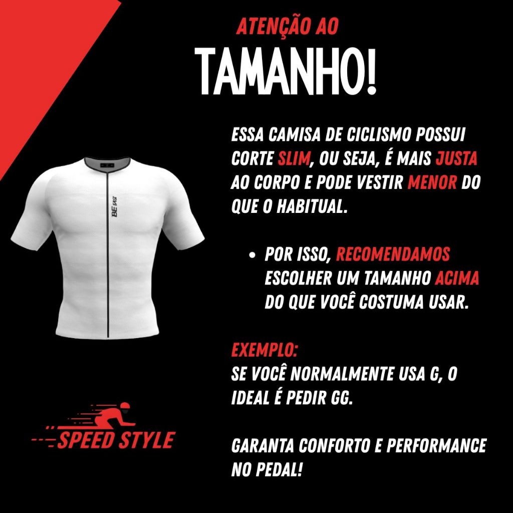 ATENÇÃO AO TAMANHO: Essa camisa de ciclismo possui corte slim, ou seja, é mais justa ao corpo e pode vestir menor do que o habitual. Por isso, recomendamos escolher um tamanho acima do que você costuma usar. Exemplo: Se você normalmente usa G, o ideal é pedir GG. Garanta conforto e performance no pedal! Conjunto de Ciclismo New Fast (Camisa + Bretelle com Espuma) -Tecnologia, performance e conforto em cada pedalada. -Para ciclistas exigentes — do iniciante ao profissional — o Conjunto New Fast combina alta performance, ergonomia e proteção. -Com design moderno e acabamento técnico, oferece conforto térmico, segurança e praticidade em treinos e provas. -O equilíbrio ideal entre inovação, estilo e funcionalidade. Destaques da Camisa New Fast: -Zíper Full Frontal com Trava -Abertura total facilita o uso e permite ventilação controlada -Trava evita abertura indesejada durante o pedal -Tecido com Microfuros Refrescantes -Ventilação constante e rápida evaporação do suor -Ideal para dias quentes e pedais intensos -Poliamida com Proteção UV+ -Toque macio, ajuste ergonômico e proteção contra raios UVA/UVB -Mangas com Corte a Fio -Sem costuras, evita atritos e garante visual aerodinâmico -Barra com Silicone Antideslizante -Mantém a camisa no lugar durante todo o trajeto -Fita Refletiva -Aumenta a visibilidade em ambientes com pouca luz -Três Bolsos Traseiros Reforçados -Transporte seguro de géis, ferramentas, celular e documentos -Reforço que evita deformações com o uso constante Destaques do Bretelle com Espuma: -Espuma de Alta Densidade -Conforto prolongado e absorção de impacto em pedais longos -Tecido de Compressão -Ajuste firme, melhora a circulação e reduz a fadiga muscular -Alças Respiráveis -Maior conforto e fixação segura nos ombros -Estrutura Anatômica com Costuras Planas -Conforto, liberdade de movimento e estabilidade Conclusão: -O Conjunto New Fast é ideal para quem busca desempenho técnico, conforto e visual profissional. -Pronto para qualquer desafio — dos treinos diários às provas mais exigentes. -Vista o conjunto New Fast. Sinta a diferença. Vá mais longe.