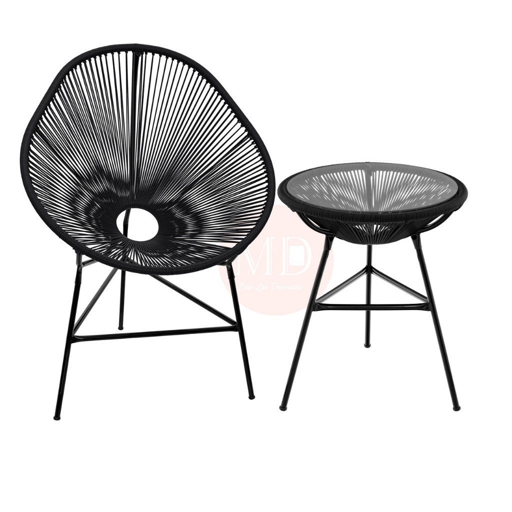Conjunto Cadeira Acapulco + Mesa Fibra Sintética Varanda Jardim Área De Lazer Piscina Frete Grátis