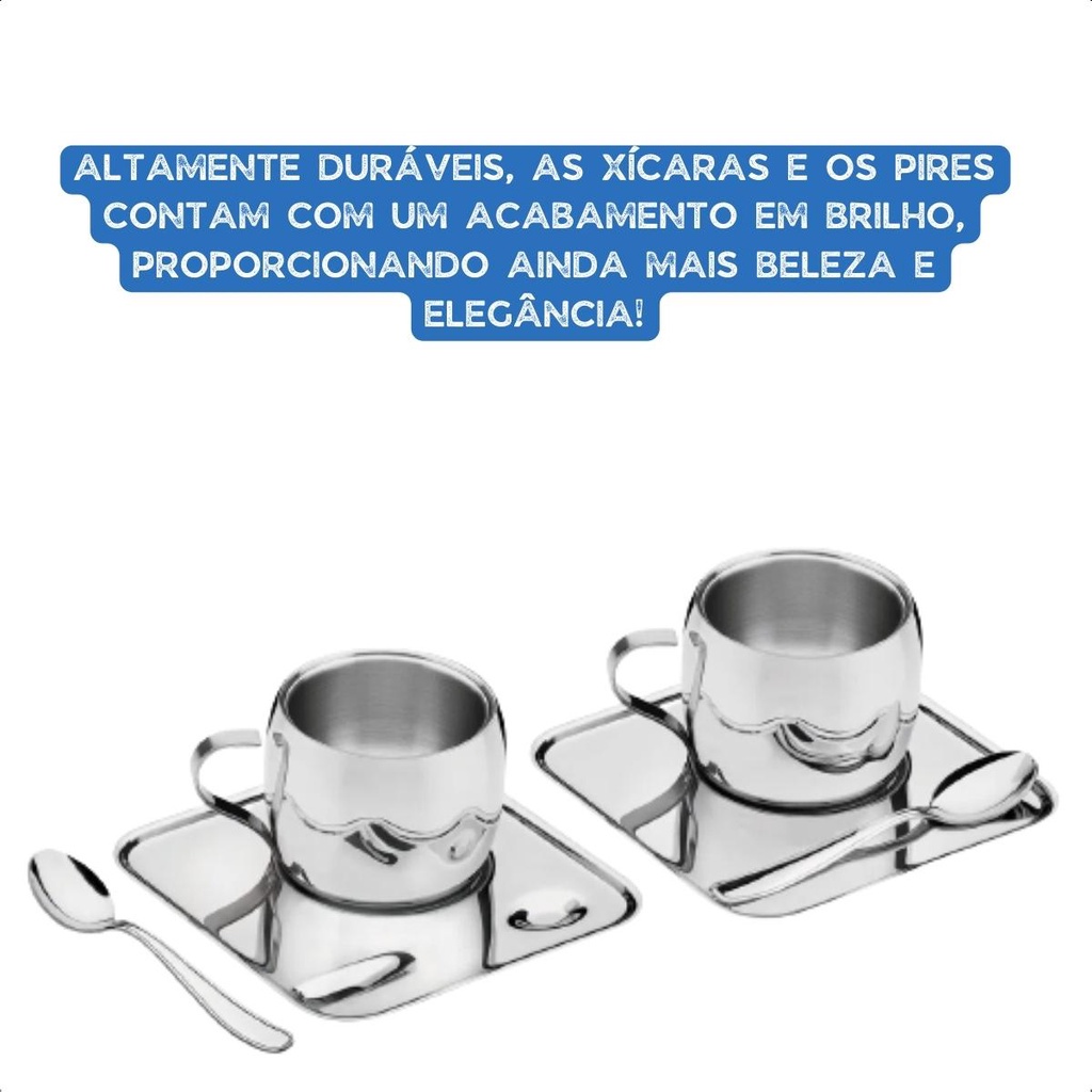 Conjunto Café Tramontina Aço Inox Xícara Píres Colher 6 Peças Cha da Tarde Utensílios Kit Cozinha