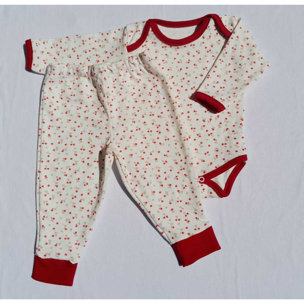 Conjunto algodão body manga longa e calça com estampa de florzinha. Confeccionado na malha Suedine 100% Algodão, manga longa com gola envelope e botões de pressão, perfeito para estações de primavera/verão, com uma estampa super fofa para deixar seu bebê ainda mais fofo. Malha confortável e adequada para a pele do seu bebê, sem causar irritações e desconforto. Especificações: 2 peças:1 Body manga longa e 1 calça Malha Suedine Composição: 100% Algodão Tabela de Medidas: Body: RN - Altura: 31cm Largura: 22cm Manga: 18cm P - Altura: 34cm Largura: 24cm Manga: 20cm M - Altura: 36cm Largura: 25cm Manga: 22cm G - Altura: 38cm Largura: 26cm Manga: 24cm GG - Altura: 40cm Largura: 27cm Manga: 26cm Calça: RN- Altura: 34cm Cintura: 15cm P- Altura: 36cm Cintura: 16cm M- Altura: 38cm Cintura: 18cm G- Altura: 40cm Cintura: 19cm GG- Altura: 42cm Cintura: 20cm OBSERVAÇÃO: Os tamanhos variam conforme o tamanho do beb