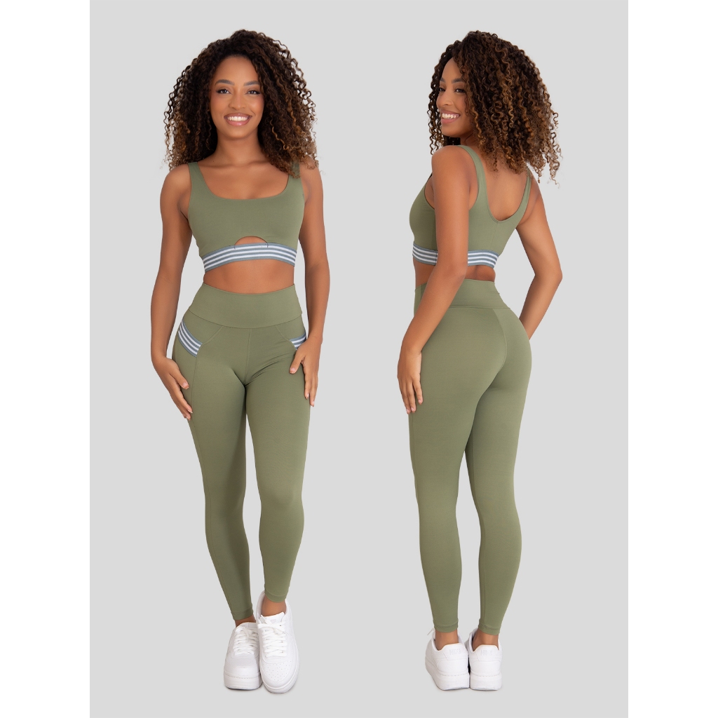 Conjunto Calça Legging + Top Feminino Fitness Poliamida Rocca com Bolsos