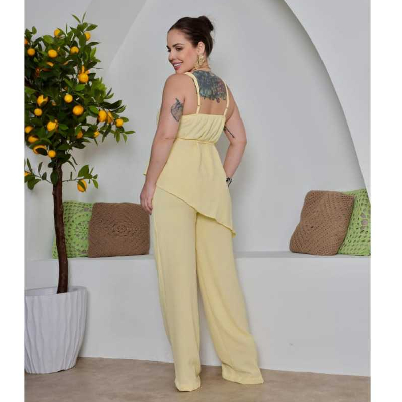 Conjunto Calça Pantalona com Forro e Blusa com Alça de Regulagem e Bojo GG G1 Moda Casual Elegancia